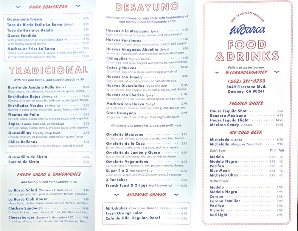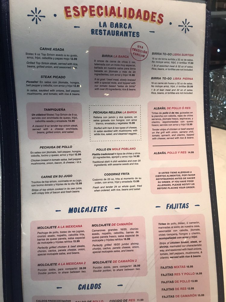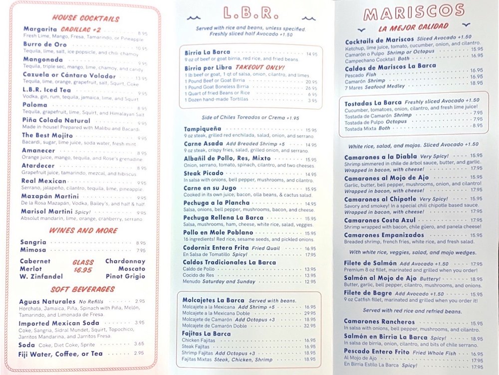 La Barca Restaurantes Menu (2025 Update)
